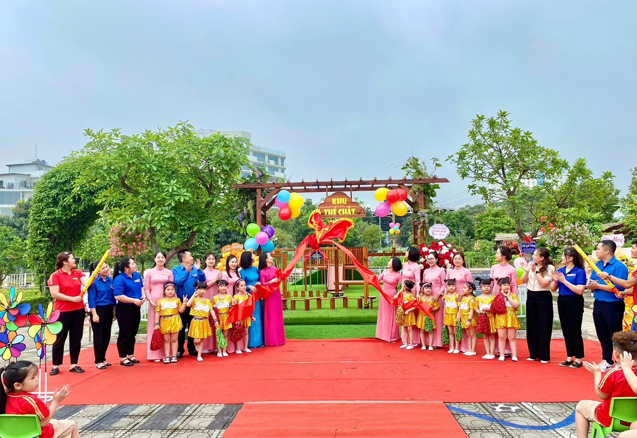 Công trình “Khu vui chơi thể chất” tại Trường Mầm non Hồng Tiến được triển khai xây dựng bao gồm các hạng mục: đi thăng bằng, chui qua ống, leo núi, cầu trượt, tổ hợp vận động… .Công trình hoàn thành đã tạo thêm sân chơi cho các con học sinh và góp phần xây dựng ngôi trường phát triển không gian kiến trúc cảnh quan xanh, sạch, đẹp