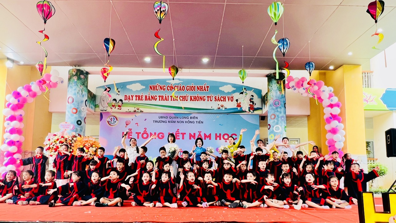 Mở đầu cho buổi lễ là những tiết mục văn nghệ đặc sắc của cô và trò Trường Mầm non Hồng Tiến, tiếp theo là tặng quà 1/6, trao giấy khen cho đại diện các lớp, giao lưu với chú hề vui nhộn..... Buổi lễ tổng kết khép lại trong niềm hân hoan, hạnh phúc của cả cô và trò. Chúc các bạn nhỏ khối MGL 5 tuổi sẽ luôn luôn mạnh khỏe, vui vẻ và chuẩn bị hành trang thật tốt cho năm học mới tại cấp Tiểu học. Chúc các con học sinh các khối sẽ tiếp tục thi đua và đạt nhiều thành tích hơn nữa trong năm học tới .Nhà trường xin trân trọng gửi lời cảm ơn cũng như lời chúc sức khỏe tới ban phụ huynh, toàn thể CBGVNV đã cố gắng, nỗ lực phấn đấu để nhà trường hoàn thành xuất sắc nhiệm vụ trong năm học vừa qua.
