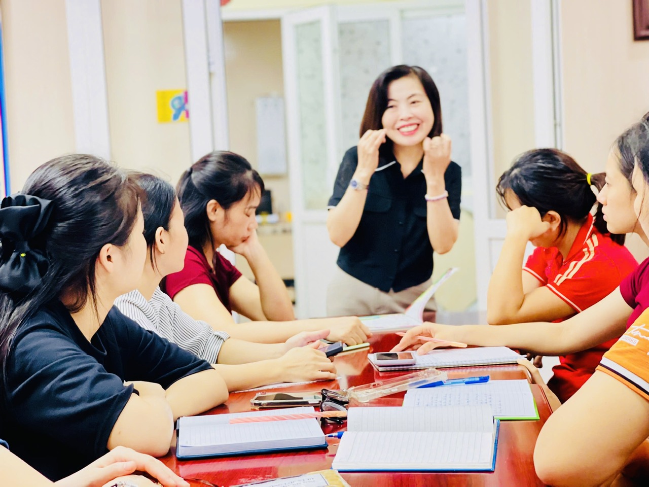 Sáng ngày 27/8/2025 với tâm thế chủ động sẵn sàng đón năm học mới 2025-2026 tổ CM trường MN #Hồng_Tiến đã tổ chức buổi tập huấn bồi dưỡng chuyên môn cho giáo viên với chuyên đề Bồi dưỡng kỹ năng giúp giáo viên tổ chức hiệu quả các hoạt động Âm nhạc và Làm quen văn học trong trường mầm non Buổi tập huấn đã nhận được sự tham gia tích cực của toàn thể CBGV trong nhà trường