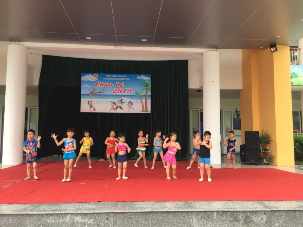 Tham gia hoạt động chào hè các bé nhà trẻ được tham gia với các trò chơi: Câu cá, quả bóng nhảy, bắt bóng, thổi bong bóng nước, các bé khối MGB với các hoạt động như: Biểu diễn thời trang hè bằng giấy, nilon với thông điệp hãy bảo vệ môi trường, các bé còn được tự tay làm những con diều bằng giấy và những bức tranh từ màu nước vẽ thiên nhiên bằng ru củ quả, khối MGN được tham gia với màn thời trang áo tắm, trò chơi bóp bóng nước, ném bóng nước, thổi màu nước, còn các anh chị khối MGL được tham gia văn nghệ Aerobic chào hè và vẽ bức tranh bóng nước dài nhất, trò chơi ném bóng nước....Hoạt động diễn ra trong không khí vui tươi, phấn khởi và bổ ích hy vọng các bé sẽ có một mùa hè thật sôi động và ý nghĩa.