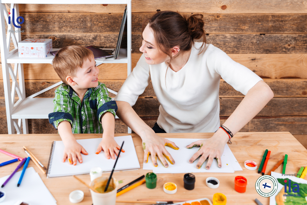 Với trò chơi này, bạn hướng dẫn bé vẽ bất kỳ bộ phận nào trên cơ thể người như bàn tay, khuôn mặt, bàn chân… Sau đó bé được trang trí những thứ mà mình vẽ được theo cách con muốn.